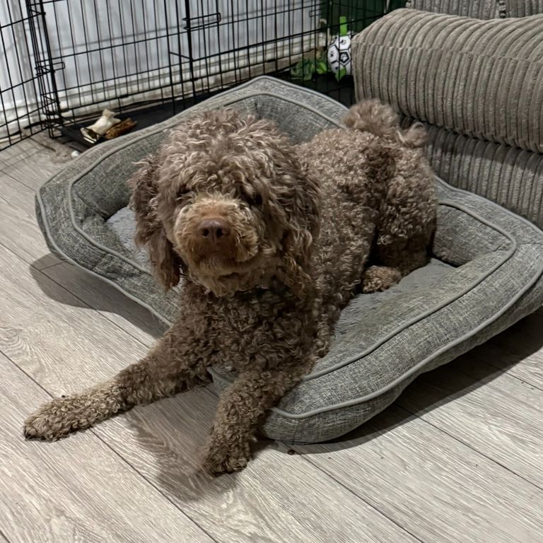 Arlo is fully house trained and is used to being in a crate although doesn’t use one currently. He can be left for up to four hours and is not destructive although he does love to destroy tennis balls and soft toys if they contain squeakers.